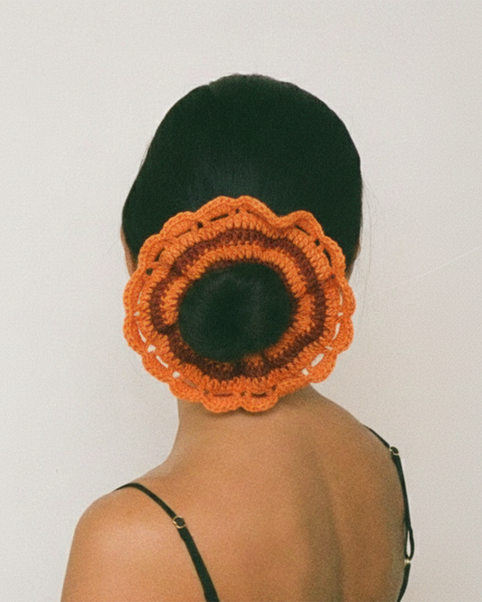 scrunchie crochê laranja