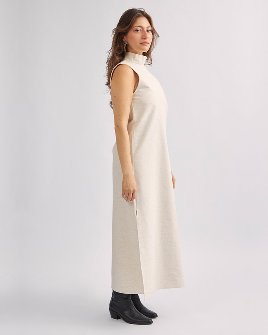 Esgotadovestido coluna linho cru