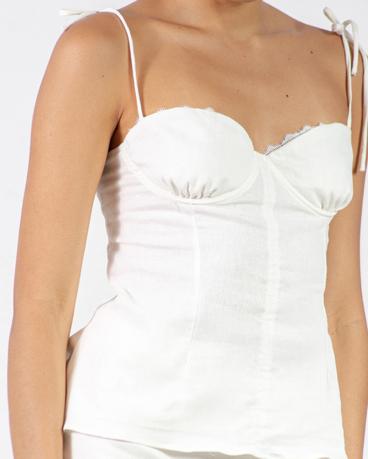 regata corset com renda off-white