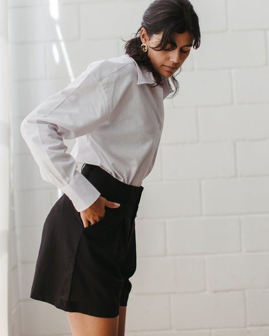 short saia em linho off-white