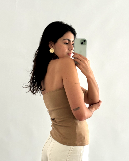 tube top canelado em algodão caramelo