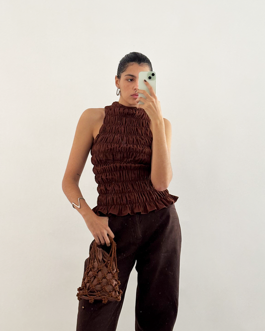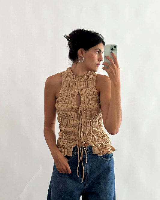 tube top canelado em algodão caramelo