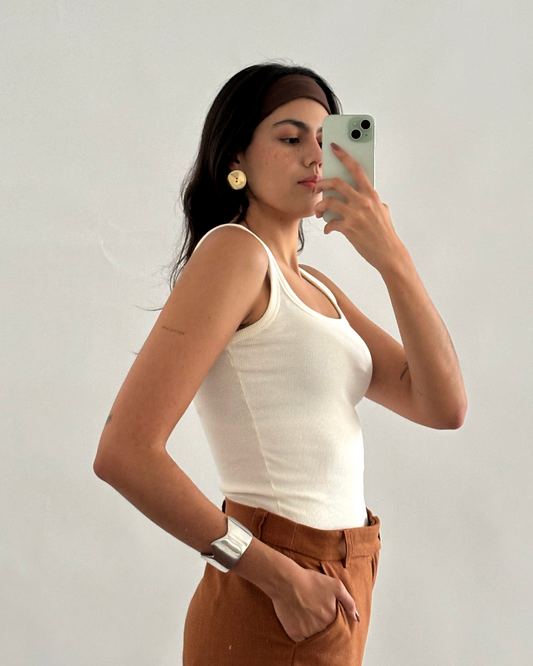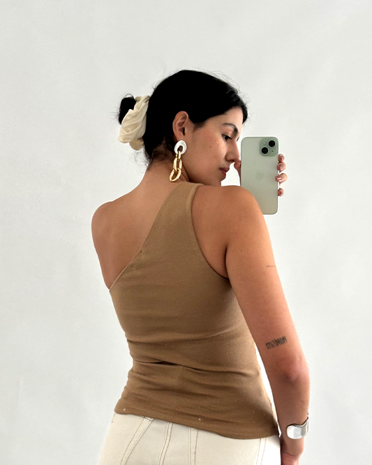 regata unilateral canelada em algodão caramelo