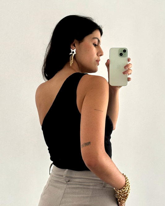 regata unilateral canelada em algodão preta