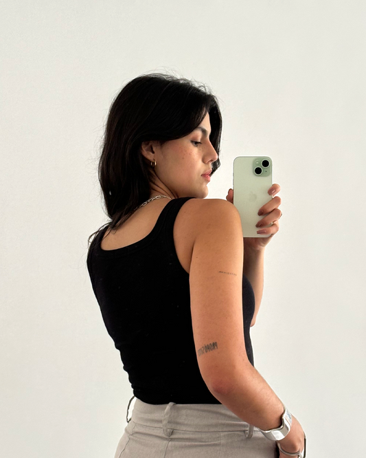 regata canelada em algodão preta