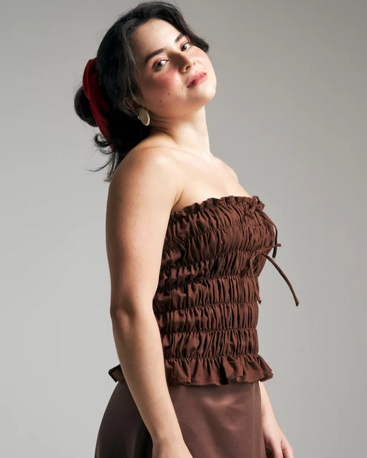 Esgotadoblusa lastex sem alça marrom