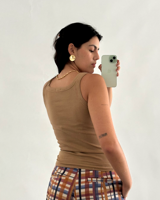 regata canelada em algodão caramelo