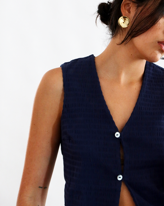 regata tricô azul marinho