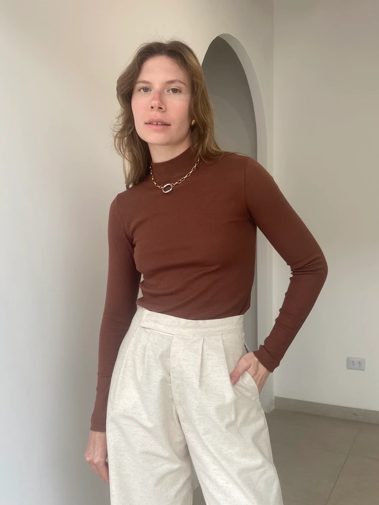 Descrição: Confeccionada em malha canelada, a nossa cacharrel possui gola alta e mangas longas. Por conta da composição do tecido ser natural, esse modelo aquece o seu corpo sem abafar, muito elegante e confortável. Perfeito para os dias mais frios.