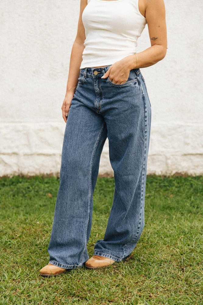 Feita em 100% algodão, esta calça jeans modelo wide tem caimento amplo e reto do quadril à barra, garantindo conforto e um visual equilibrado.