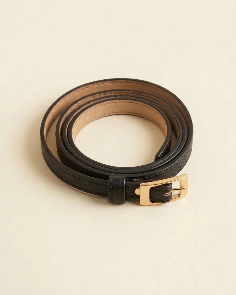 O Cinto Oui é fino, delicado e traz acabamento para a roupa. Seu propósito talvez não seja roubar a cena, mas trazer intenção, quebra e cuidado com a produção.