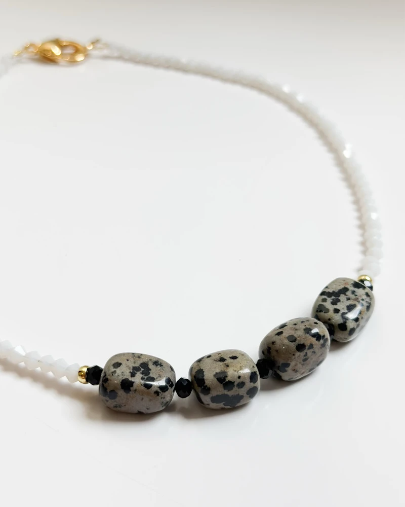 feito com miçangas e cerâmica pintada a mão, o colar trio cerâmica é, ao mesmo tempo, delicado e jovial. sendo o acessório perfeito para trazer um toque especial para seu look.