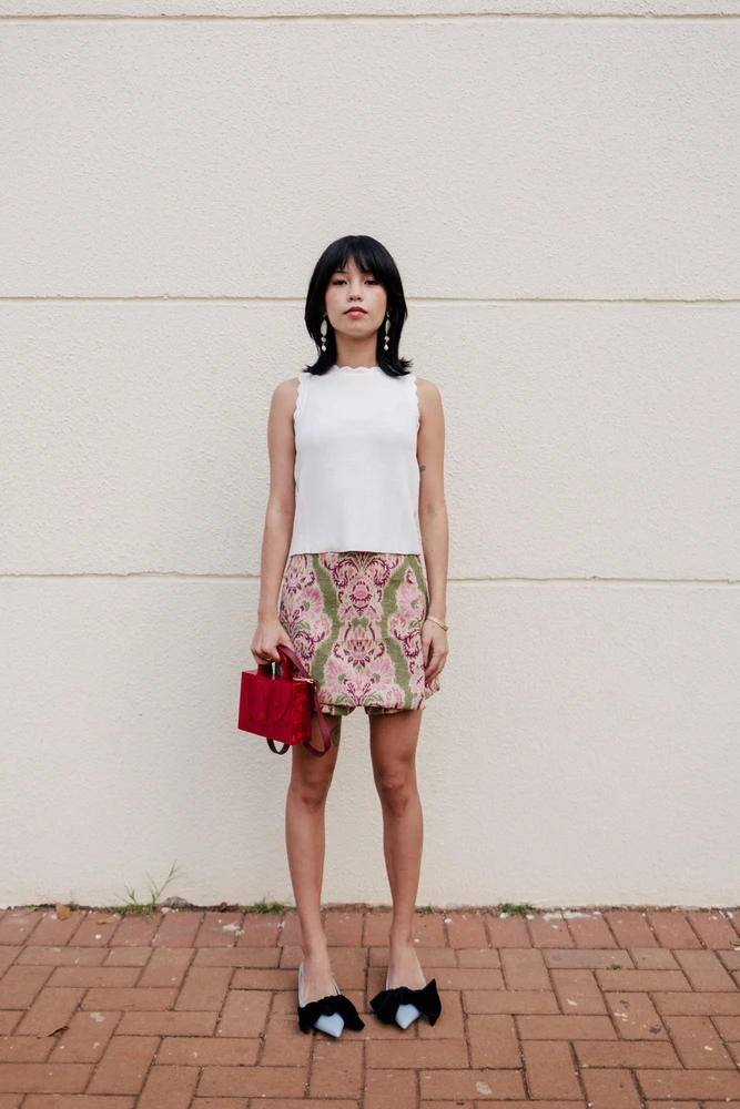 O short saia Nicole é confeccionado em jacquard, tecido sustentável da EcoSimple. Uma peça estruturada com caimento elegante e sofisticado, que transita desde um passeio diurno até produções noturnas.