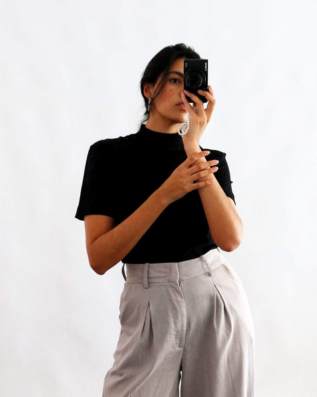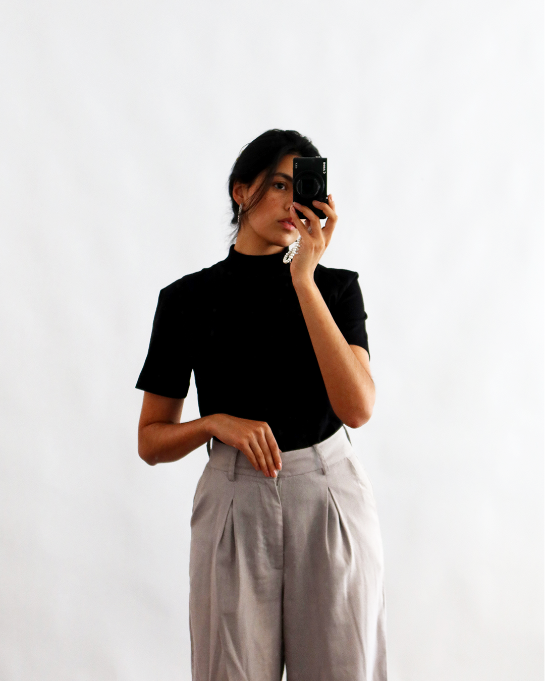 uma camiseta de gola alta, que é um básico com um toque especial (amamos!)