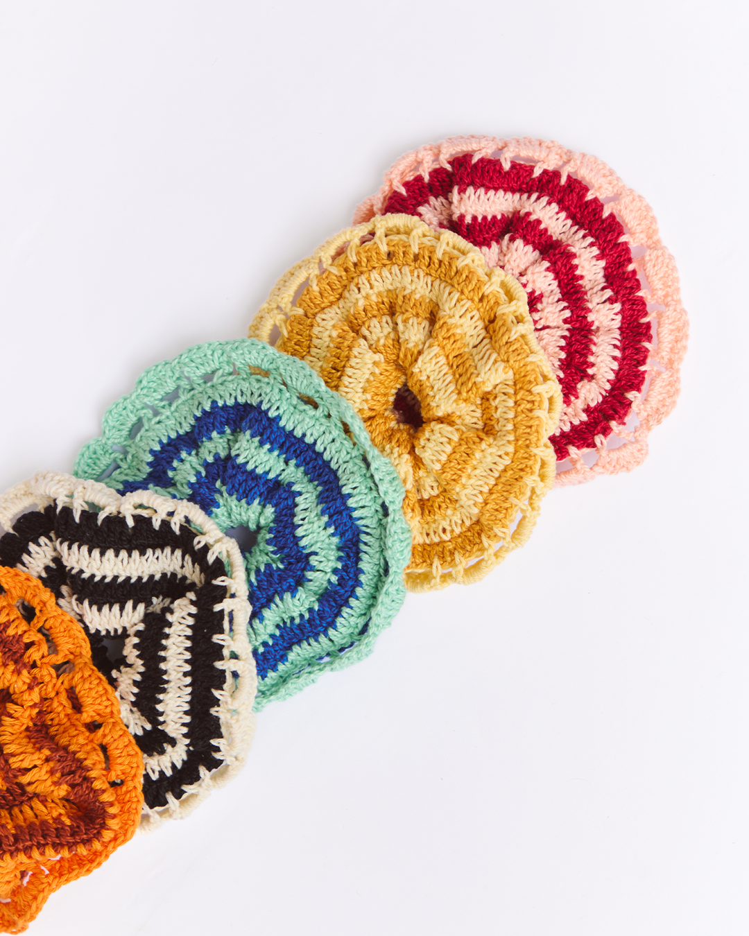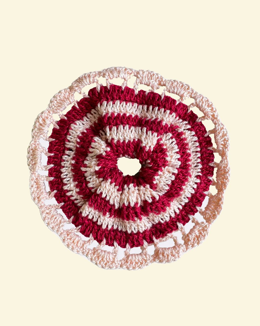 max scrunchie crochê listrado rosa